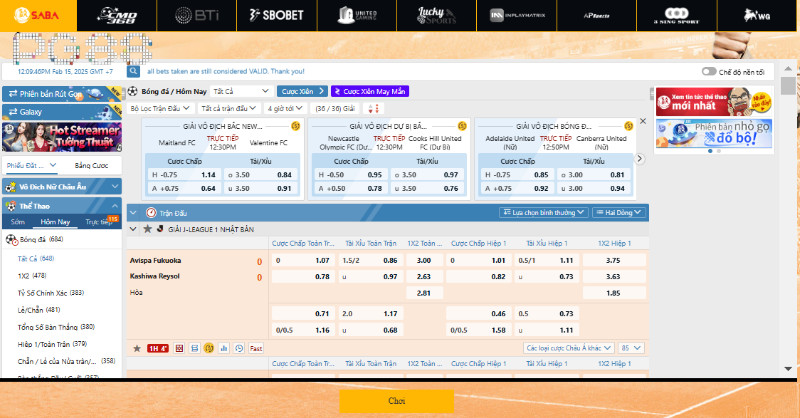 - Cá cược live trong trận với tỷ lệ biến động theo thời gian thực.