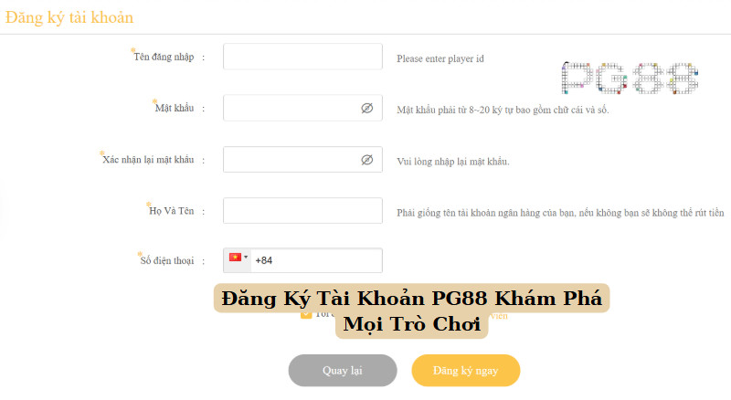 - Sau khi đăng ký thành công, bạn có thể đăng nhập vào tài khoản PG88 để bắt đầu trải nghiệm.
