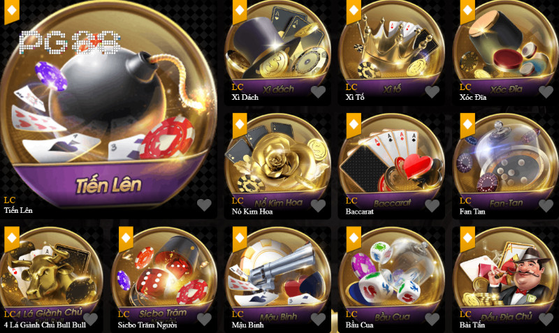 - Sicbo (Tài Xỉu): Đoán tổng điểm của ba viên xúc xắc để đặt cược.